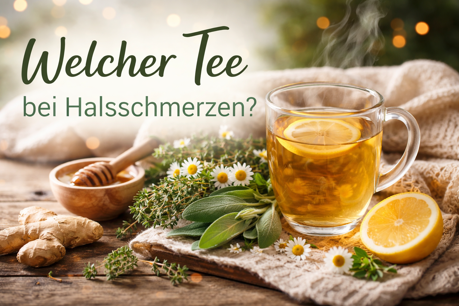 Ein Klassiker bei Halsschmerzen ist Kamillentee. Er wird häufig getrunken, wenn der Hals gereizt ist oder sich trocken anfühlt. Ebenso beliebt ist Salbeitee, der traditionell im Zusammenhang mit Hals- und Rachenbeschwerden genannt wird und sowohl getrunken als auch zum Gurgeln verwendet wird. Viele Menschen empfinden Salbei als wohltuend, vor allem bei stärkeren Halsschmerzen.